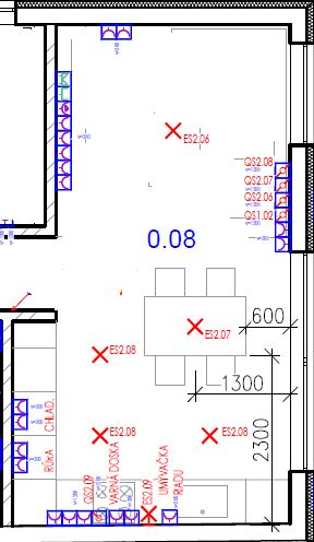 prikladám obrázky kuchyne a kúpľne, červené X sú … @elenna22 " a mám v kúpeľni aj okno." - ako už vyššie napísali, v noci ti je okno v súvislosti s osvetlením miestnosti bezpredmetné. A cez deň nemusíš svietiť, takže okná a osvetlenie spolu veľmi nesúvisia. V kúpeľni mám aj ja - na strope 2 telesá a nad umývadlom jedno. Dobre ti to naprojektoval. 2 telesá lepšie rozptýlia svetlo v miestnosti. V kuchyni - tie 3 centrálne svetlá sú v pohode. Ale 1 svetlo nad linkou ti bude málo. Lepšie by bolo, keby si mala stropné ledky (aj 3) ktoré by ti osvetľovali tu spodnú pracovnú dosku. Naľavo linka bude asi vysoká, tam svetlo netreba. Kuchynský stôl - OK. Obývačka - podľa mňa jedno centrálne osvetlenie je málo. Tam by sa pýtali 2 stropné telesá plus nejaké ešte na stenu, alebo nad sedačku, také ambientné, keď budeš pozerať telku. Alebo nejaké s regulovateľným jasom.Odpoveď na príspevok od chrobak7: