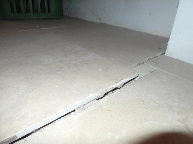@korenko preto hovorím netreba šetrit na lepidlách , videl som niečo podobné na úzkej chodbe dačo cez meter,strelila celá dlažba, vypadá to ako gresová dlažba treba tam bezpodmienečne používat flexi lepidlo , a podliepat aj kachličku...je to smutné žial to je realita,toto prípadne vyzerá akokeby stavba ešte sadla , tie potery boli aké staré ked sa lepila dlažba?