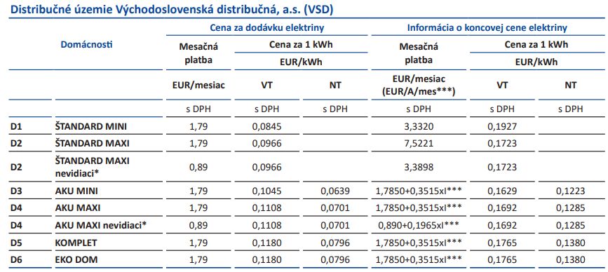 @mgx No ak dobre chapem, VSD to ma podla amperaze... ved to pozeram, ze pri DD4 3x50 je mesacna/rocna platba 19,36/232,32€ a pri DD4 3x25 10,57/126,87€. Coz pre 110€ rocne sa oplati dat vymenit istic... Ale s prechodom do DD2 netreba (zatial) ani menit istic... FVE nechce, pri takej spotrebe imho vcelku chapem. Na poslednej vyuctovacej FA su "polozky za dodavku silovej el" 235 bez dph a "polozky za distribuciu a regulovane polozky" okolo 300 bez dph.