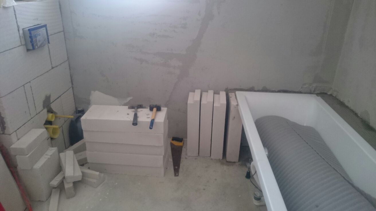 Viac menej znamená že on dával ytong pod vaňu, ktorý sme si aj tak zrezavali na vysku, ktorú sme chceli.