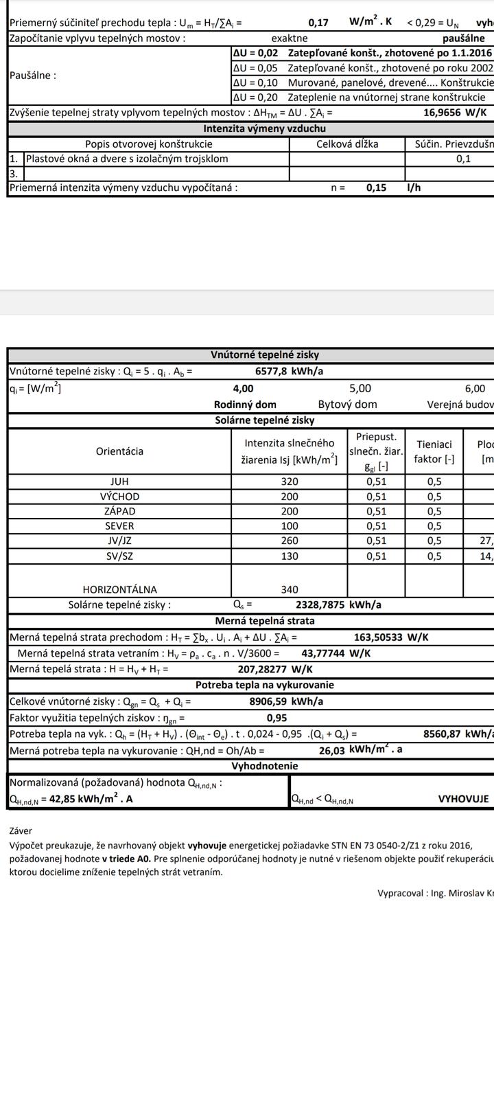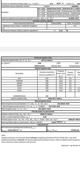 Mimochodom, výsledok merná potreba tepla okolo 26 kWk/(m2a) sa dosiahne, ak dáte rekuperáciu, je to dole v poznámke.