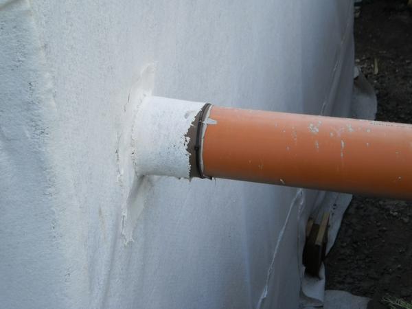 Ono to nie je až tak komplikované spraviť ten prestup. Z izolačnej fólie sa spraví taká manžeta, ktorá sa nataví na zvislú izoláciu a prilepí na to potrubie.