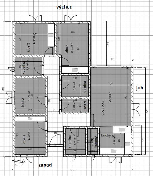 V ďalšom nákrese skús dať k sebe kuchyňu (s oknom) a kotolňu. Veď ten kotol bude vyrábať teplú vodu do kuchyne. (Aj do kúpeľní samozrejme). A nechcela by si z kuchyne východ na terasu? Podľa mňa by to bolo praktické.
