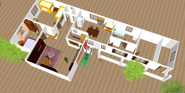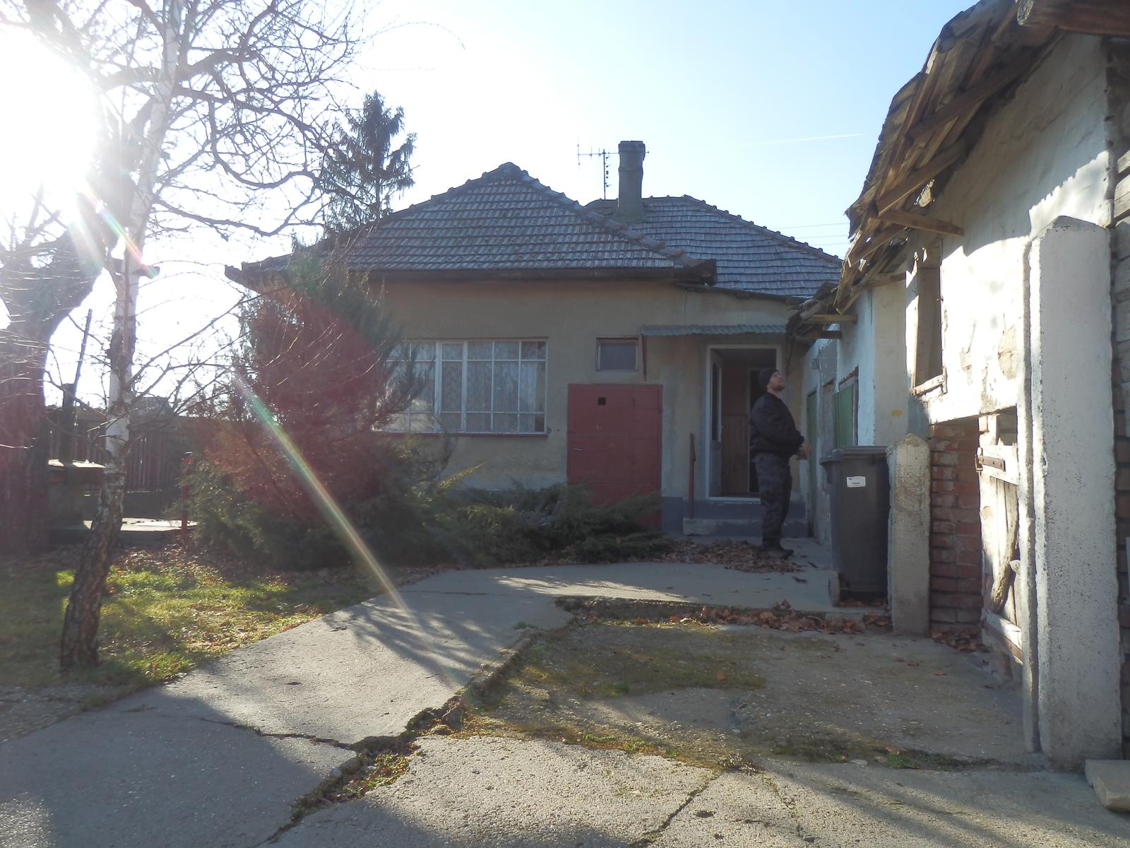 ta fotka dole je sucastny stav. to okno ktore tamje vedla dveri je na nakrese hned za gaucom. Povodny stav (co je aj na fotke) je kocka, detska izba, spalna, obyvacka (na nakrese uz zväcsena na juz.str o 1,5m) a polka kuchyne...proste kocka. ten zyvysok sa bude pristavovat.