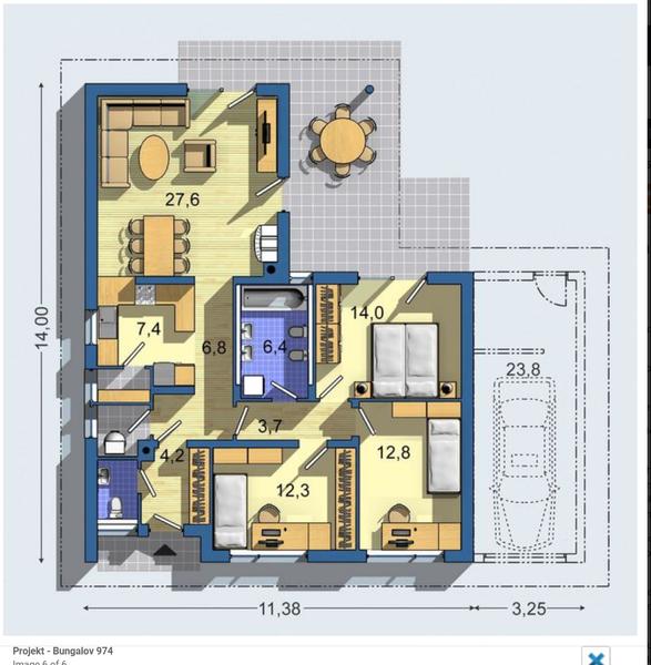 nečítam príspevky nad... my tento dom máme s pristavanou garážou... bývame v ňom 2 dospelé osoby.. cez víkend + 1 osoba... je plne vyhovujúci, aj keď, ako na všetkých takýchto projektoch, urobili sme aj my, ale len minimálne zmeny.... v skratke: obývačka dostatočne veľká, kuchyńa tiež.... izby - dnešný štandart, menšie, ale dá sa v nich s kľudom prežiť... veď nikto sa v izbách zbytočne nezdržuje.... a puberťákom na zašitie stačia... kúpelňa je dostatočne veľká na sprcháč, vaňu, wc a aj 2 zrkadlá s 2 umývadlami... predné wc pri vchode - ideálne.... kotoľňa, vojde tam kotol s práčkou a sušičkou nad sebou, k vysoká úložná skrinka a je miesto aj na koš na prádlo, vešať opraté prádlo sa v nej nedá... a to je podľa mňa jediná vec, čo mi v tom dome chýba... že, ak nemám sušičku, tak by som musela vešať prádlo v niektorej z izieb...... nie je možné v dome urobiť vstavaný šatník, ale vstavané skrine sú možné vo všetkých 3 izbách... na chodbe sa dá tiež umiestniť skriňa na topánky a kabáty, dosť veľká aj hlboká, my tam máme vstavanú a nemáme pociť stiesnenia.... dom máme troška pootočený, vchod cca Juho-západ, dom je dostatočne svetlý ( 1 okno máme zväčšené v obývačke, nemáme krb, ja krby nemusím, nám to úplne stačí, ak by si sa ešte niečo chcela spýtať, tak sa pýtaj...