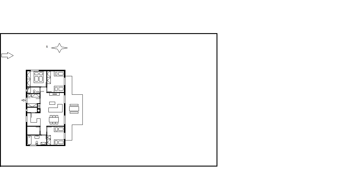 Pozemek budeme mít orientace sever-jih, placka, cesta kolem severní strany, vjezd na pozemek ze severu u východní hrany pozemku. Rozměry 27x44 m. Máme dva kluky 15 a 17 let, dceru 2 roky a další dítě na cestě. Postavit bych chtěl bungalov do 125 m2. Obdélník. Dva dětské pokoje. Na TV moc nekoukáme, ani večer a návštěvy míváme zřídka, děti s námi tráví dost času v obýváku, tedy jsem začal uvažovat o tom průchoďáku. Představoval jsem si, že by byl jeden pokoj jakoby stranou, pro starší kluky a dva pokoje by byly propojeny s obývákokuchyní - ložnice a dětský pokoj pro malé děti. V případě, až mladší děti vyrostou, mohly by se přestěhovat do pokojíku, který bude stranou a pokojík vedoucí z obýváku by byl pro návštěvy starších synů. Kdyby bylo u pokojíku, který bude trochu stranou WC se sprcháčem, které by sloužilo i pro návštěvy, bylo by to super :).