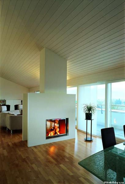 krb by som nechala asi takto, bude viac v strede domu a bude lepsie do priestoru prudit teplo :) a navyse v takom rieseni by krasne ukazal obojstranny ...