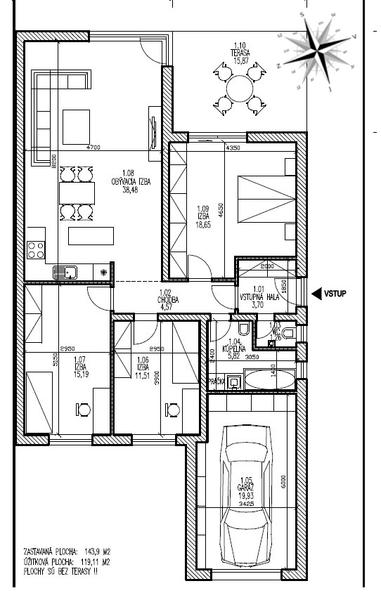 No nie je to najstastnejsie riesenie, ak sa da tak by som urcite par zmien urobila napr. velke okno do obyvacky by som dala zo strany kde je terasove sedenie a severnu stranu zamurovat alebo dat nejake uzke okno. A do spalne by som dala okno aj z vychodnej strany,presveti to aj nahreje a urcite by som tu vonkajsiu terasu zo severnej strany uzavrela stenou,na vyber su rozne varianty...my sme mali takto terasu a ked sme ju uzavreli stenou...drevenou... tak to uz bola parada ale dovtedy sa tam nedalo sediet koli vetru. Inac vydela som aj nestastnejsie projekty,Drzim palce.