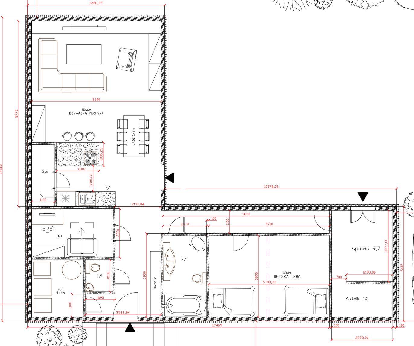 Alebo ignoruj všetko čo som napísal a choď k projektantovi. Povedz mu svoj koncept, prípadne ukáž, čo si nakreslila a on ti navrhne možno iné logické a praktické usporiadanie.