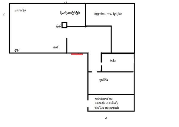 Je k dispozícii stará chalupa. Stavaná ešte z kameňa a kotovice. Rodičia prerábali a prerábali a prerábajú a stále nie je hotová a ani nikdy nebude... Ak budeme mať v budúcnosti financie, rada by som išla do toho, že zbúrať a na rovnakom pôdoryse postaviť novú. Pôdorys by som chcela zachovať, lebo je to v kopci a postavené na kameni, ktorý rodičia pekne upravili a zároveň by som z toho chcela mať takú klasickú kopaničiarsku chalúpku aká to kedysi bola...