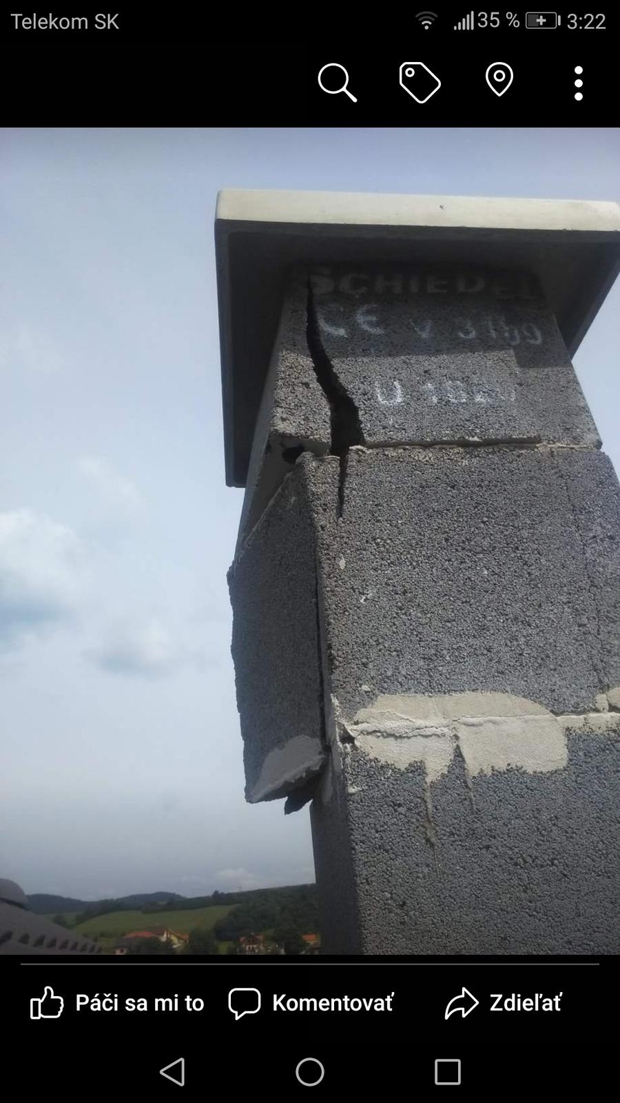 Takto nejak to vypadalo...este ze som vtedy nebol na chalupe ale v praci...musela to byt dobra supa ked aj bodovky vypalilo a som.nejake nasiel na zemi...kusky betonov z komina po izbach rozlietane...