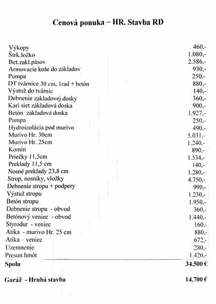@marian28 len pre istotu tých živnodtníkov sme platili iba za prácu na základoch a múroch. Materiál sme si dohadovali sami , strechu robila iná firma . Spolu to ale bolo cca tých 26.000