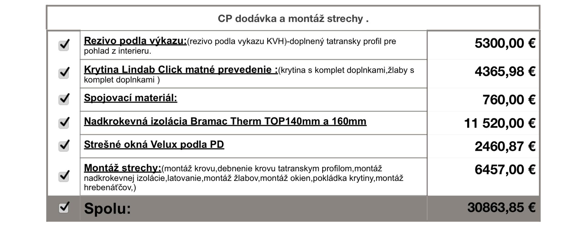 ale tak vy tam mate aj izolaciu a podbitie, stresne okna, ich montaz atd ...