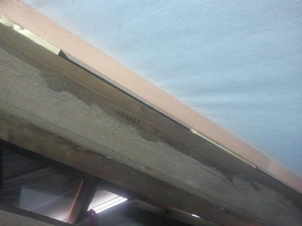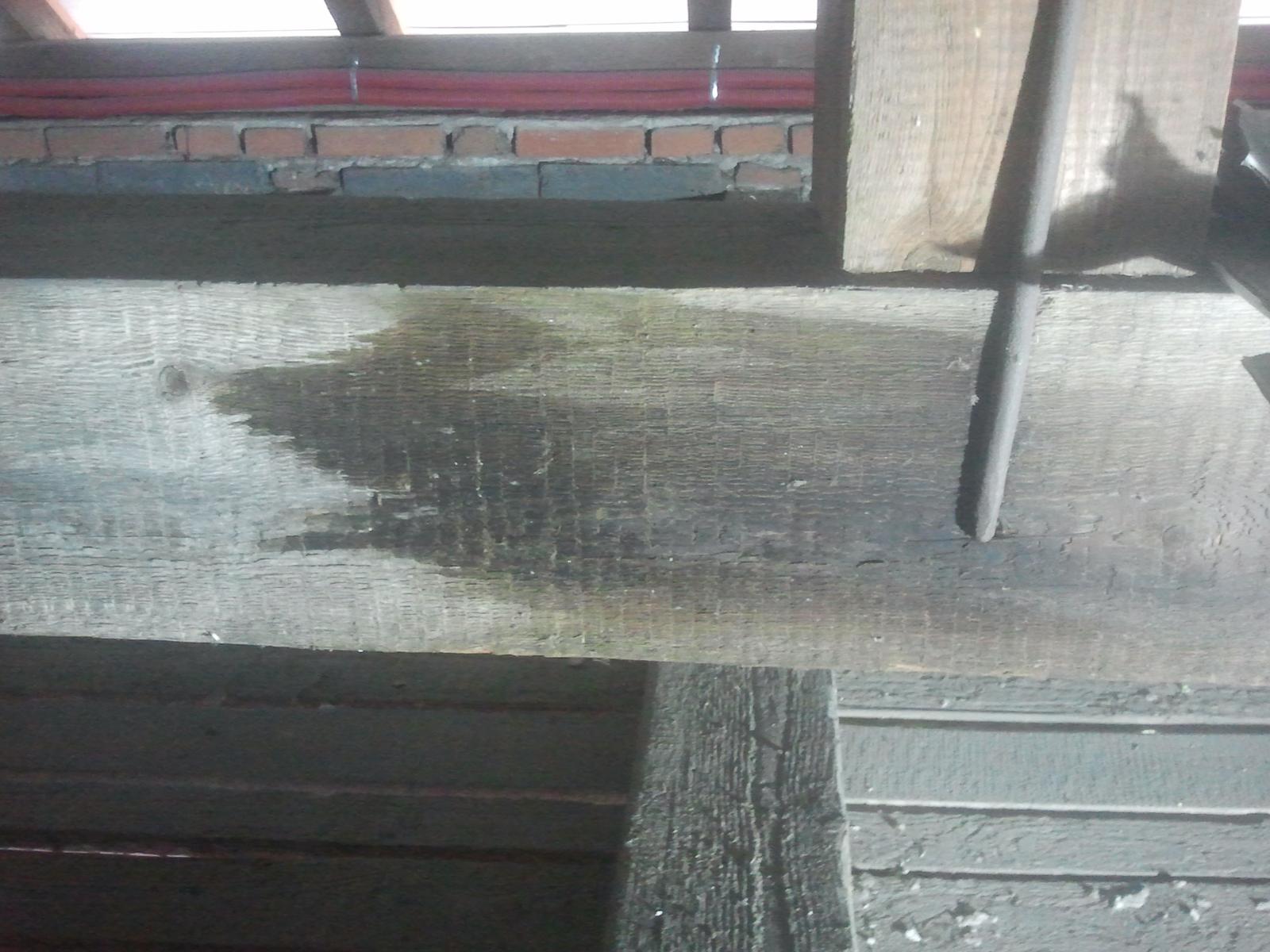 Tie posledné fotky, to je určite zatečené. Pozri krytinu, či náhodou... Zatiecť môže okolo klinca cez fóliu.