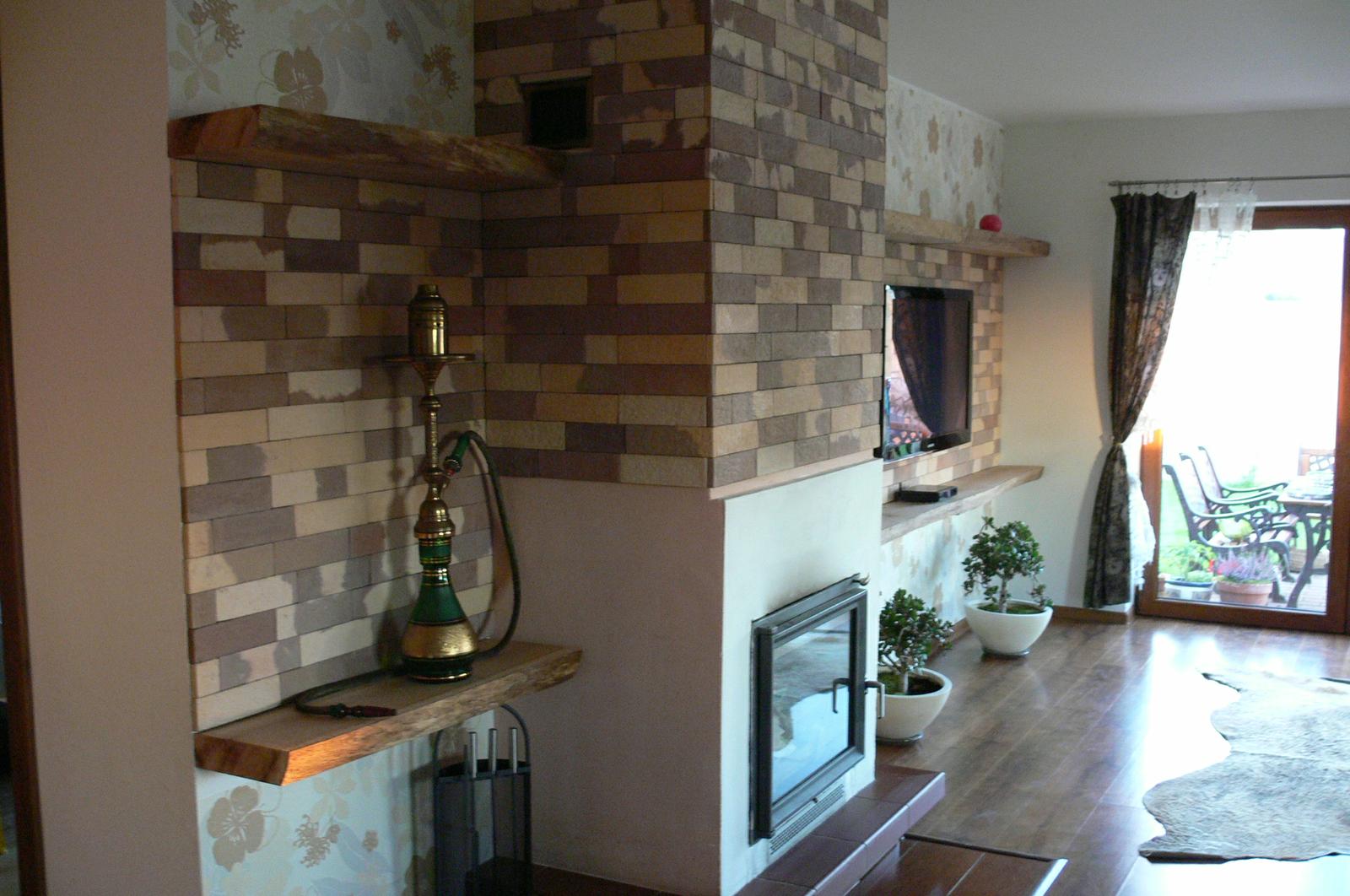 Ahoj, ja som urobila svoju obyvaciu stenu takto, je to kombinacia obkladu, tapety a drevenych masivov, tie sa natru podla potreby na pozadovany otien. Este na krb nejaky pekny portal, dorobit obklad z boku a bude to hotovo. Mozno ta to inspiruje