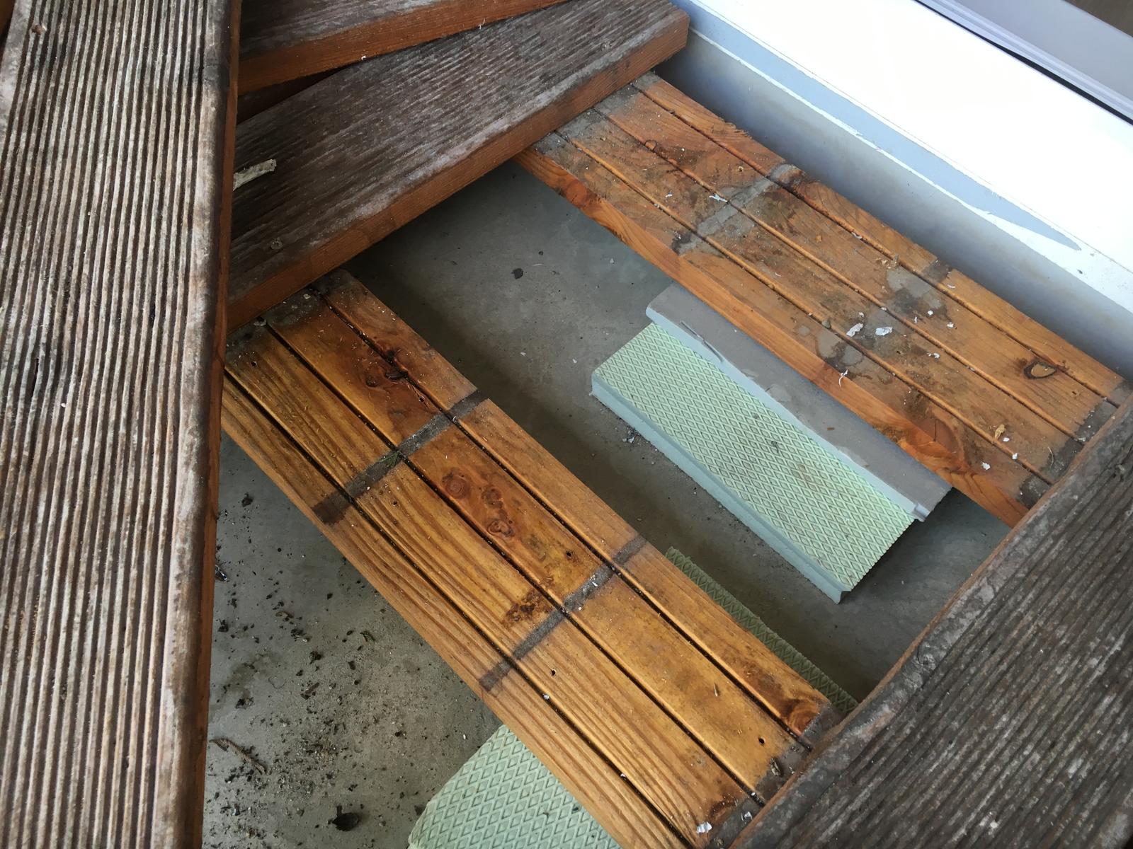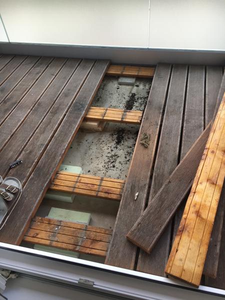 Nasa loggia vyzera hrozne. Vid fotografie. Ten kto tam daval to drevo zrejme odbornik nebol. Kazdopadne to vyzera hrozne a chceme to dat prec. Rad by som to nahradil nejakou peknou dlazbou. Problemom je vsak vyska. Na jednej strane mame k dispozicii 4cm a na druhej strane 6,5cm (vid foto)