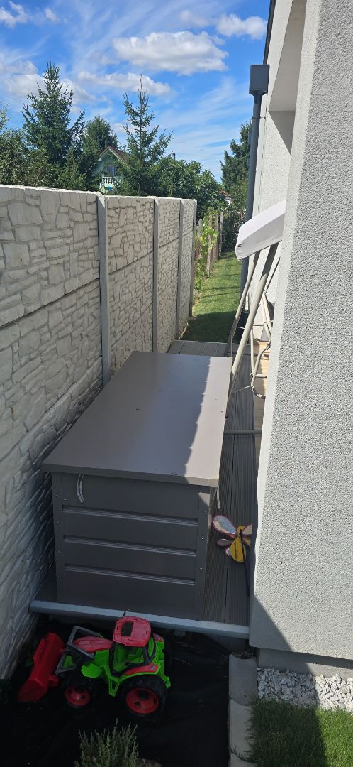 Určite dorabku nechcem spájať s terasou ani kotvit do nej. Len niečo, čo by samostatne stalo ideálne v rovine s terasou. Teraz je terén nižší o cca 15 cm.