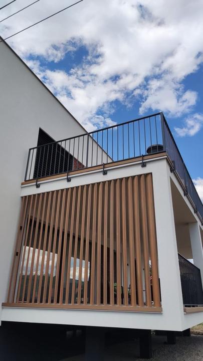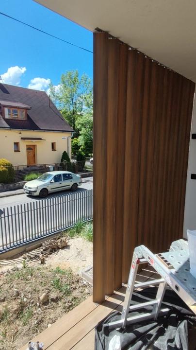 Ahojte, máme hliníkový prístrešok nad terasou, ve… @cile sú to slnolamy a do exteriéru bezúdržbové materiály, napr. WPC, dajú sa aj otáčať podľa potreby.Odpoveď na príspevok od gumbik: