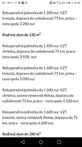reálna cena pred mesiacom montované rozvody VZT do čistej plochy 140m2 980 Eur a to keby som strašne chcel tak by stáli 500. Klasické potrubie nie antibakteriálne, namiesto ukočovacích boxov flexo potrubie a podobne...