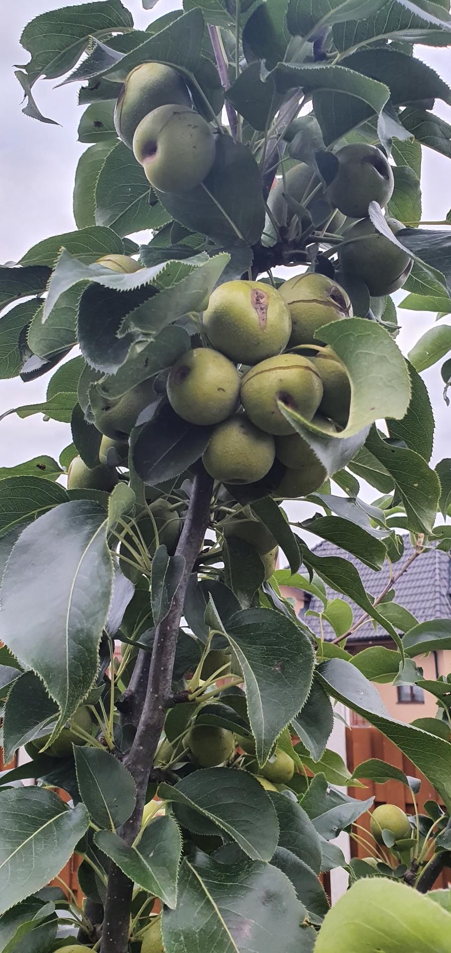 Nemáte blízko závlahu, že by boli v trávniku neďaleko nejakej trysky/ turbíny a dostali viac vody ako by mali? Nepršalo u Vás priveľa? Na anglickom fóre hovoria, že to je prebytkom vody hlavne na plodoch+ keď sú na slnečnej strane+ závisí vraj aj od odrody. Trávnik vydrží veľa vody no stromom to môže vadiť.