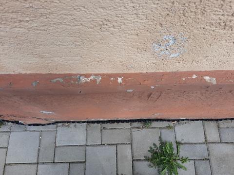 - vľavo (za rohom) je ulica, kde je chodník priamo opretý na múr domu, je tam nopová fólia ktorá je trochu odškárená a je nad zámkovou dlažbou chodníka 1.5-2cm, nie viac