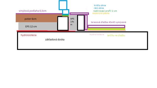 @otec87 preco neplanujes terasu na jednej urovni s poterom vnutri, ten schod bude dobry komu? Ak este mas iba zakladovu dosku, treba najprv nejako rozumne vyriesit ten tepelny most, to je dost velky pruser. Potom vyries ostatne podla toho. Hydroizolacia toto nezachrani.