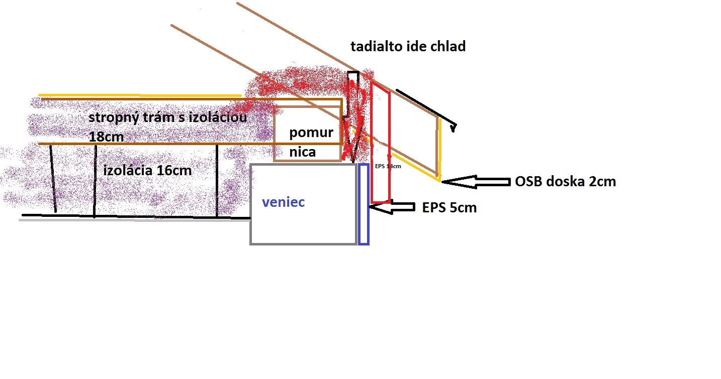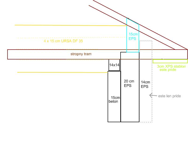 Prípadne skrátim spodnú OSB dosku a EPS 14cm potiahnem az po vrch krokvy ( po foliu) a knauf dám medzi EPS14cm a pomúrnicu a samozrejme aj nad pomúrnicu.
