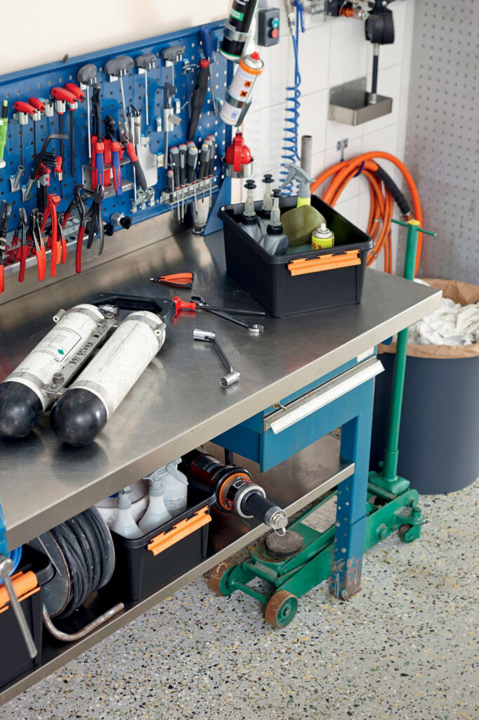 Funkčná dielňa nie je len o organizácii, ale aj o bezpečnosti. Prvým krokom je správne usporiadanie priestoru tak, aby minimalizovalo riziko úrazov. Kovové regály by mali byť ukotvené k stene, aby sa zabránilo ich prevrhnutiu, a ťažké náradie by malo byť vždy uložené na spodných policiach. „Ostré nástroje je vhodné ukladať na magnetické držiaky alebo do uzavretých boxov. Bezpečnosť v dielni začína pri drobnostiach, ako je protišmyková podložka pod regálom alebo dobre osvetlené pracovné miesto,“ doplňuje Zlatko Slebodník z Hornbachu.
