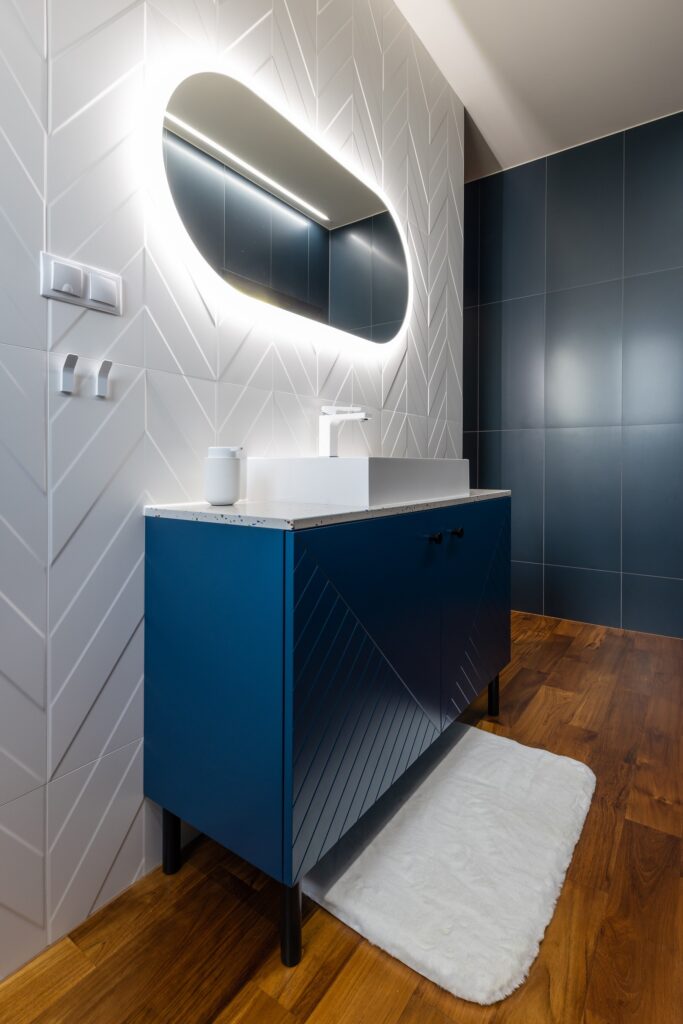 Modré obklady v kúpeľni sú odvaha. V kombinácii s drevom vytvorili moderný a útulný dizajn. Bola to láska na prvý pohľad, alebo vopred premyslené rozhodnutie?
