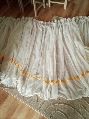 záujemava záclona biela zo zlatým.... s....... 12,5 m.... nariasena na 4.25 cm..... d.... 155 cm...