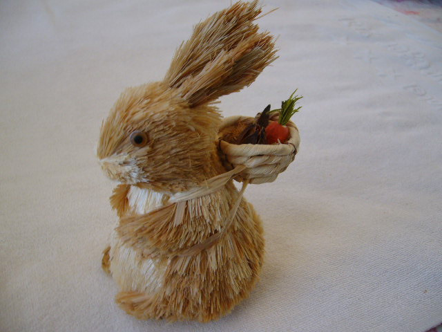 Zajko idealny na velkonocnu dekoraciu.Vyska po hlavicku je 14cm,Vyska aj s uskami 18cm.