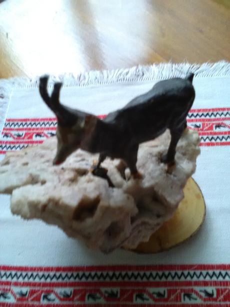 Kamzík na skálke výška 19 cm. Stav - použ., zachovalý.