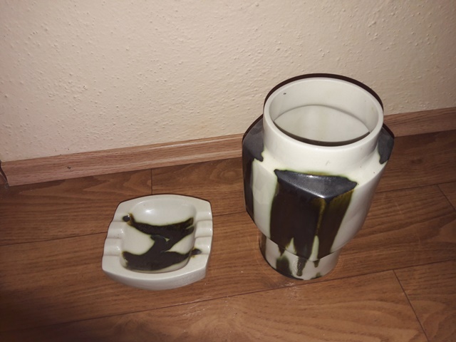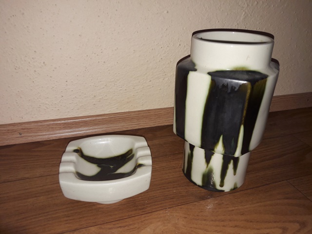 - váza a popolník , made inCzekoslovakia , vaza 23cm(v) , 14cm (š), popolnik 13cm(š), 6cm (v)