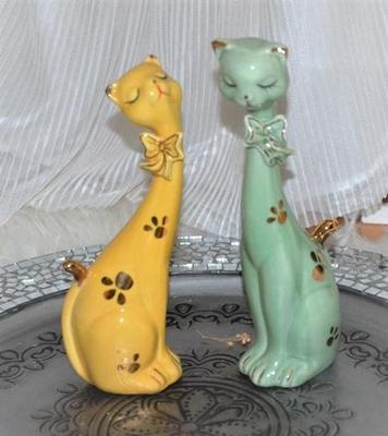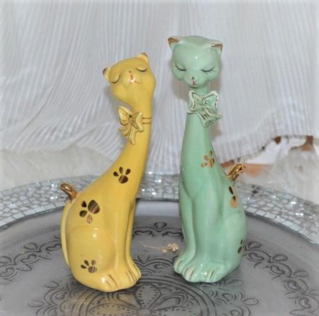 nevymieňam!!predaj len spolu!len vystavené,žltá mačička má dolepený chvost,nie je to vidno,lepené sekundovým lepidlom, vyška zelená 21cm,žltá 19cm...kuk aj na iné moje inzeráty