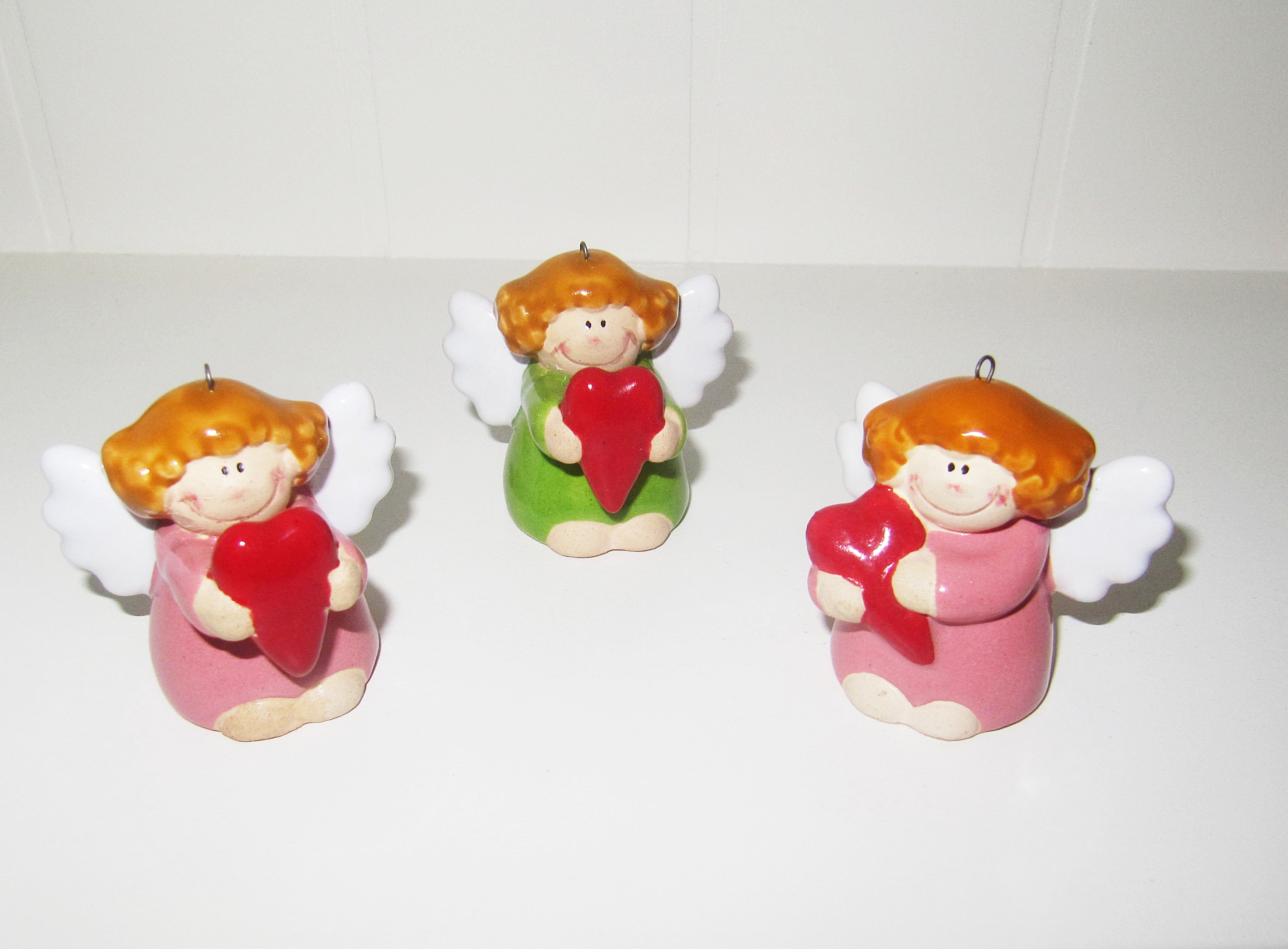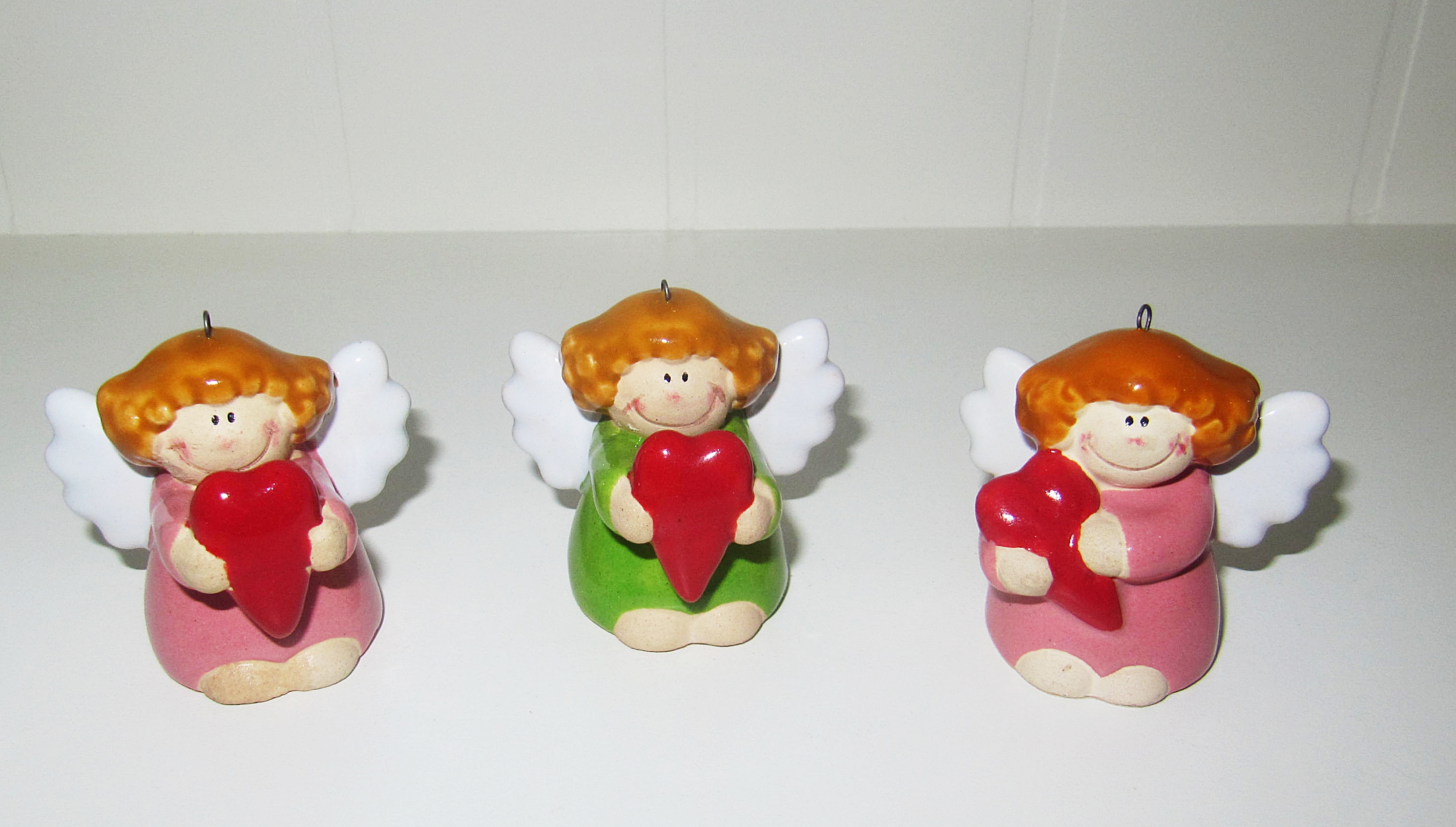 Mám na predaj troch anjelov so srdcom. Materiál - keramika. Cena za jeden kus anjela je 9 eur. Poštovné a balné je 2,50 eur platba vopred na účet. Anjelikom sa dá prevliecť aj šnúrka a môžete si ich zavesiť. Ak by ste mali záujem o anjela, tak mi potom napíšte ktorého ste si vybrali.