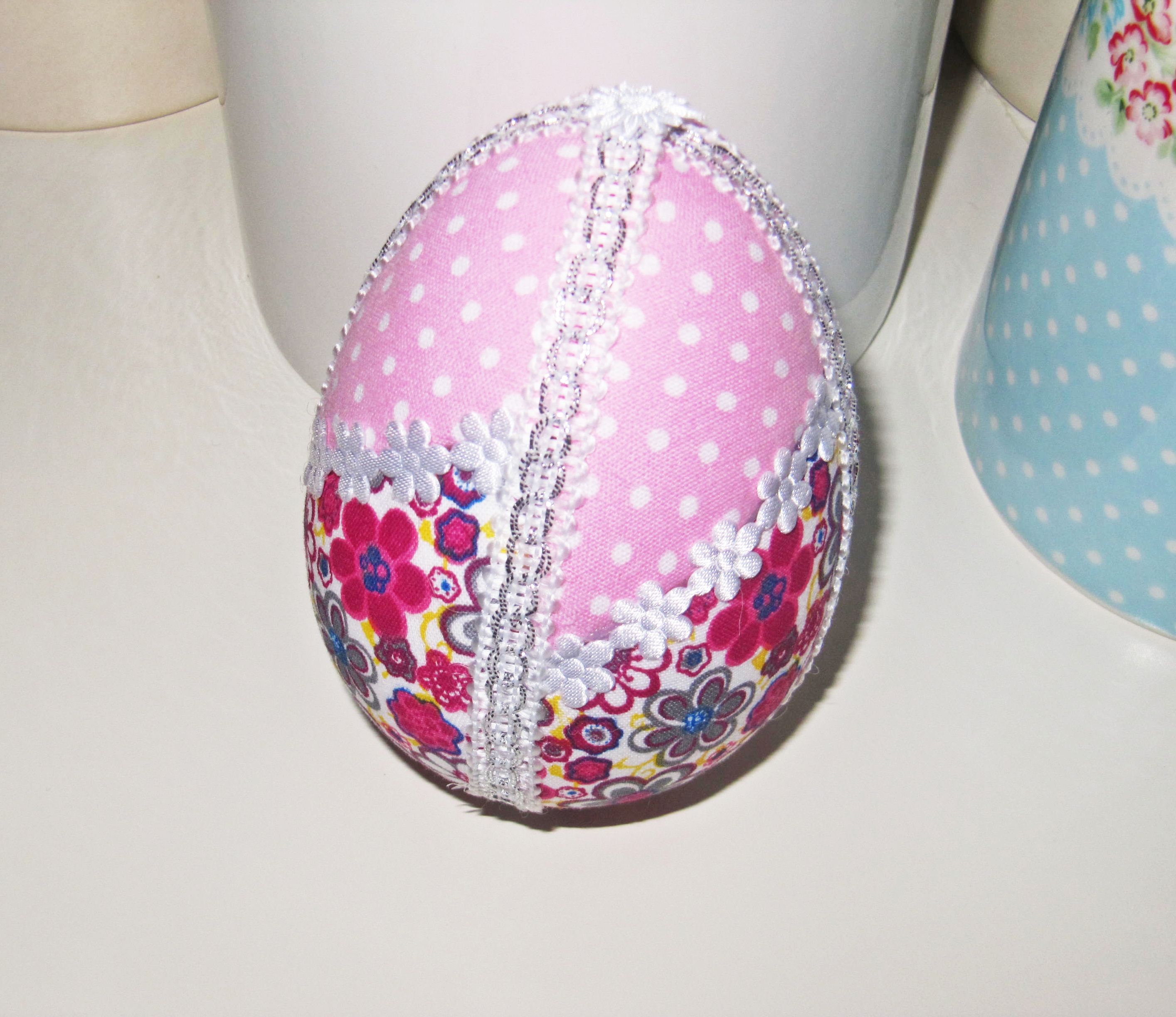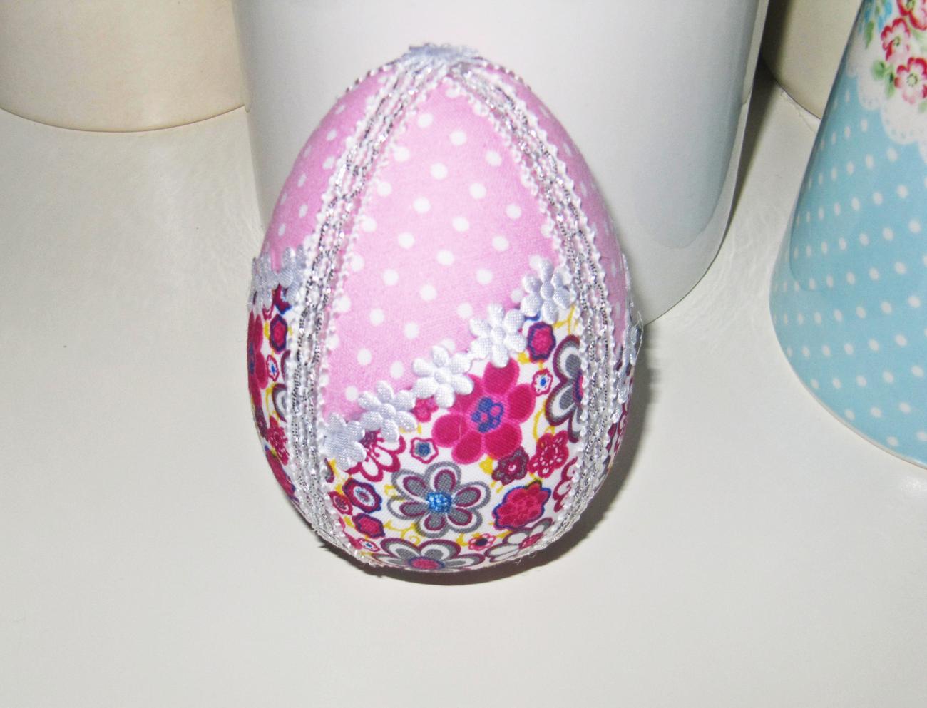 Mám na predaj dekoráciu Veľkonočné vajíčko. Vnútro - polystyrénové vajíčko. Povrch - farebný textil, stuha. Výška je 10 cm. Poštovné je 3,50 eur platba vopred na účet.