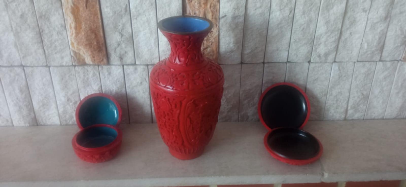 Predám 1. set váza-výška23cm, šperkovnica/7cm/, šperkovnica/10cm/, 2.set váza 15cm, šperkovnica 5cm, šperkovnica 6cm. Predám aj po setoch. Pošlem poštou, alebo osobný odber v NR. Cena za oba sety 15€.