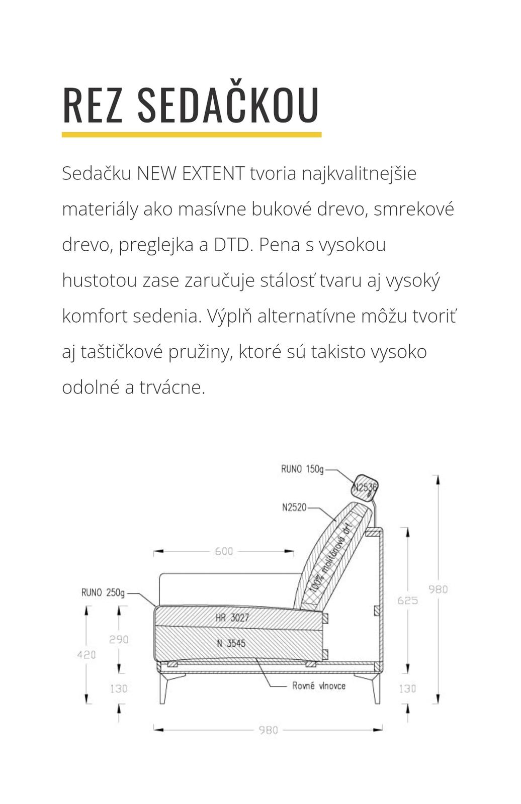 Nová sedačka dodaná 14.10.2021 komplet záruka + faktúra Dôvod predaja - potrebujeme o niečo svetlejšiu. Sedačka NEW EXTENT je vyrobená na mieru z veľmi poctivých materiálov, stabilnej kostry (tvorí ju masívne drevo, preglejka a DTD), extrémne kvalitných PUR pien s vysokou hustotou a voliteľným odporom voči stlačeniu, čo dominantne definuje kvalitu a komfort sedenia. Výberom materiálov sa považuje za jednu z najluxusnejších sedačiek.