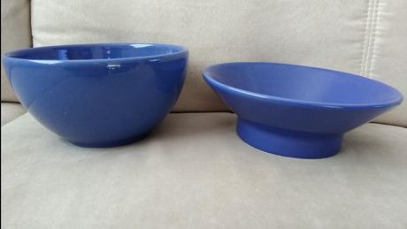 Tmavomodré nepoužívané nové misky. Tá hlbšia má priemer 15 cm, tá druhá 16 cm. Cena 4 € za obidve +poštovné.