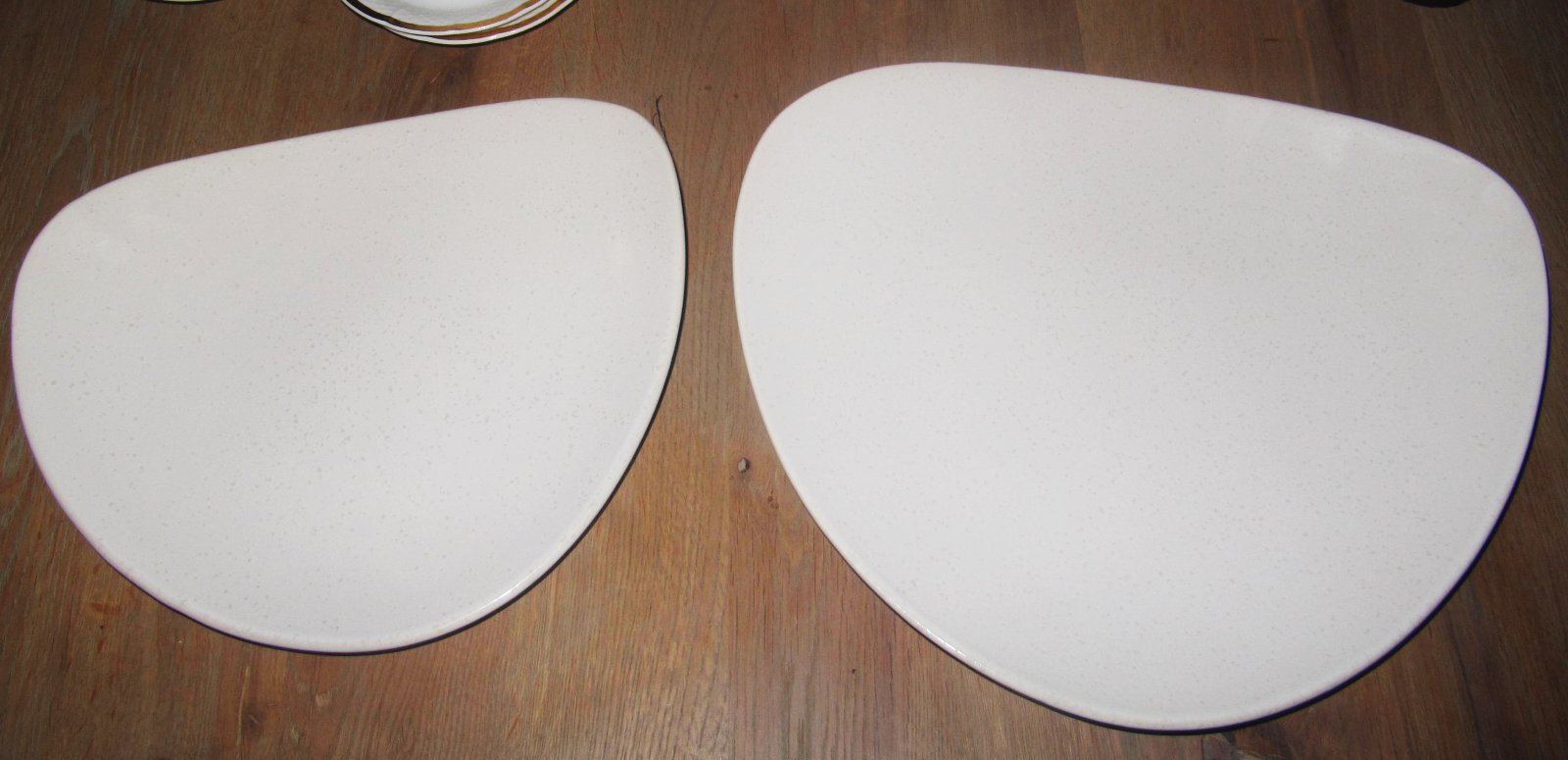 Mám na predaj veľké taniere nemeckej značky ASA Selection Germany. Materiál - kamenina. Sada tri kusy - dva veliké taniere 34 cm a jeden menší 14 cm. Cena za celú sadu troch tanierov je 35 eur v zľave. Dajú sa kúpiť taniere aj jednotlivo. Tam už zľava nie je. Veľký tanier jeden kus 20 eur a ten menší 14 eur. Veľké taniere sú dlhé 34 cm menší tanier je dlhý 14 cm. Taniere sú všetky rovnakej farby, trošku zle sa mi fotili. Osobný odber alebo poštovné je 5 eur platba vopred na účet. Posielam ako POZOR SKLO. Osobný odber, by bol najlepší.