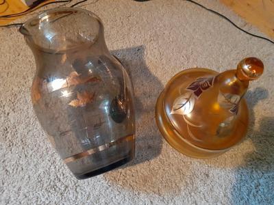 Predám krásny sklený džbán a misku hnedej farby po 2e