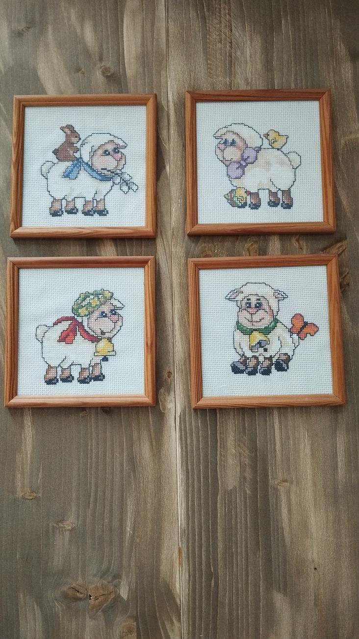 Sada 4 obrázkov s jarným motívom baranka Rozmer16x16 CM Drevený ramik Cena aj s poštou