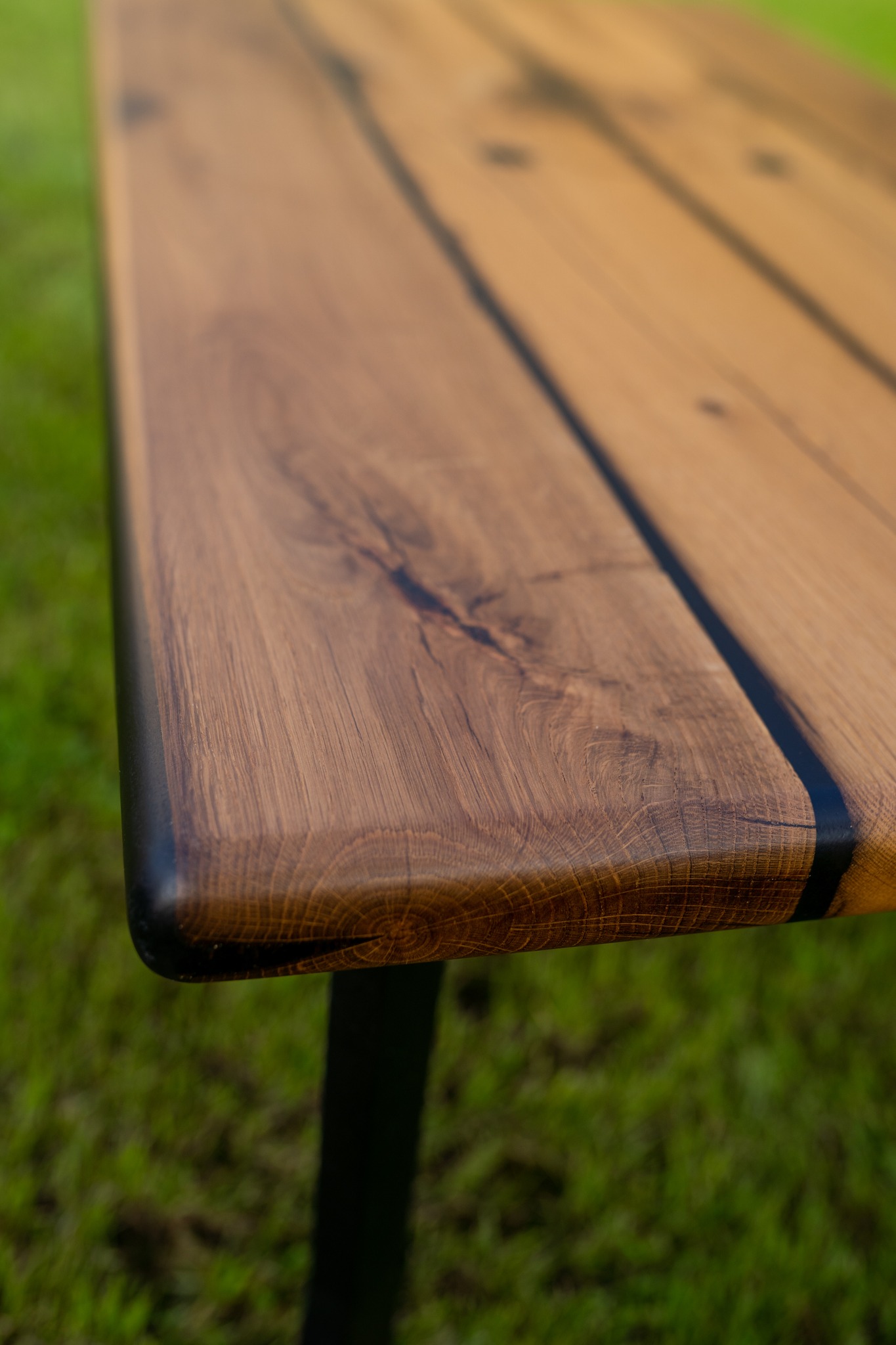 Stôl je osadený na ručne vyrobenej oceľovej podnoži, špeciálne navrhnutej tak, aby zdôraznila jeho jedinečný charakter.