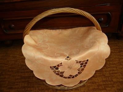 maly obrusok z jednej strany je jednofarebny - beźovy,iba štitok by bolo potrebne odstrihnut a z licnej strany je okerovej mramorovanej farby.Vyborne sa hodi aj na zakrytie kośićka Širka 31cm dlzka 45cm GA187