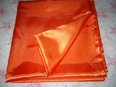 Leskla podsivka, nieco podobne ako saten.Ma peknu sytu pomarancovu farbu. Sirka 152cm, dlzka 304cm.Cena za meter je 2.90. Cely kus stoji 8.70. latky337