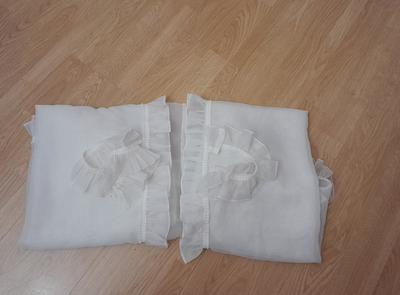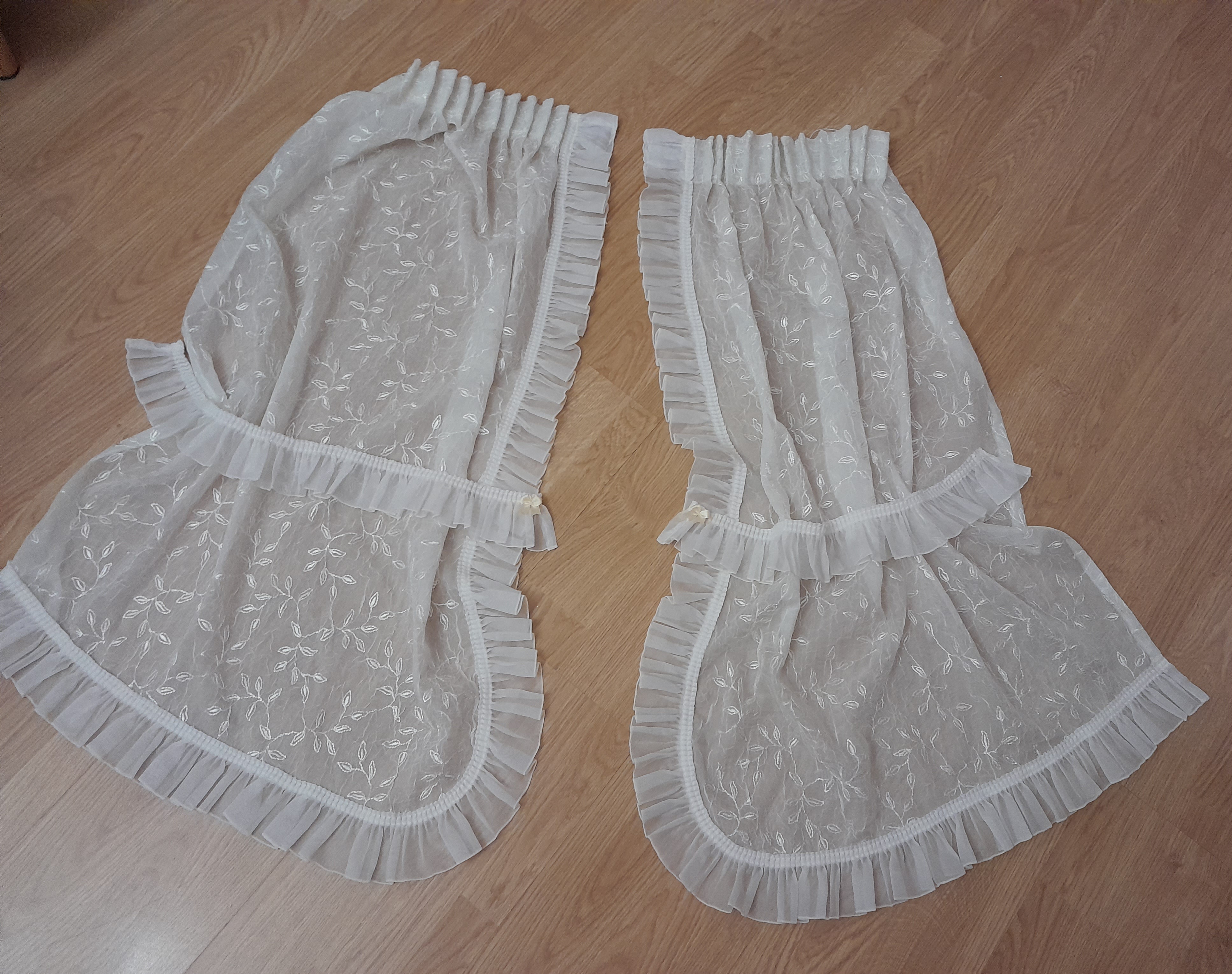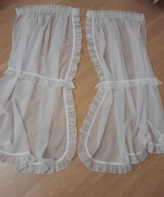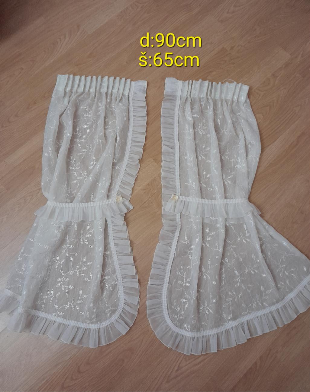 Predám vyšívané záclonky 2ks ,farba slonová kosť,cena spolu 12+pošt. a druhé hladké biele 2ks ,cena spolu 9€+pošt. Dajú sa zavesiť aj na koĺaj.garnížu s háčikmi, sú bez poškodenia.