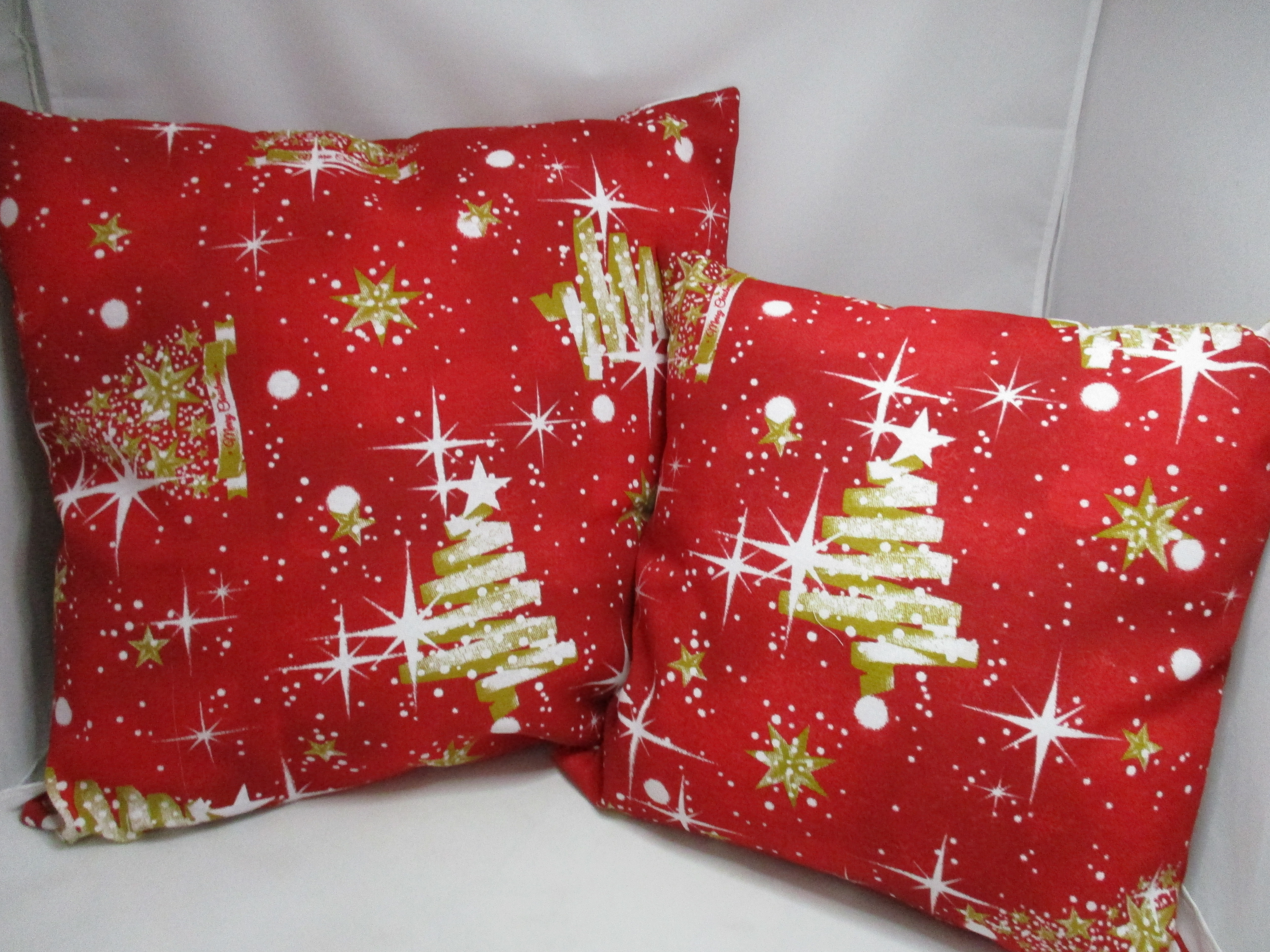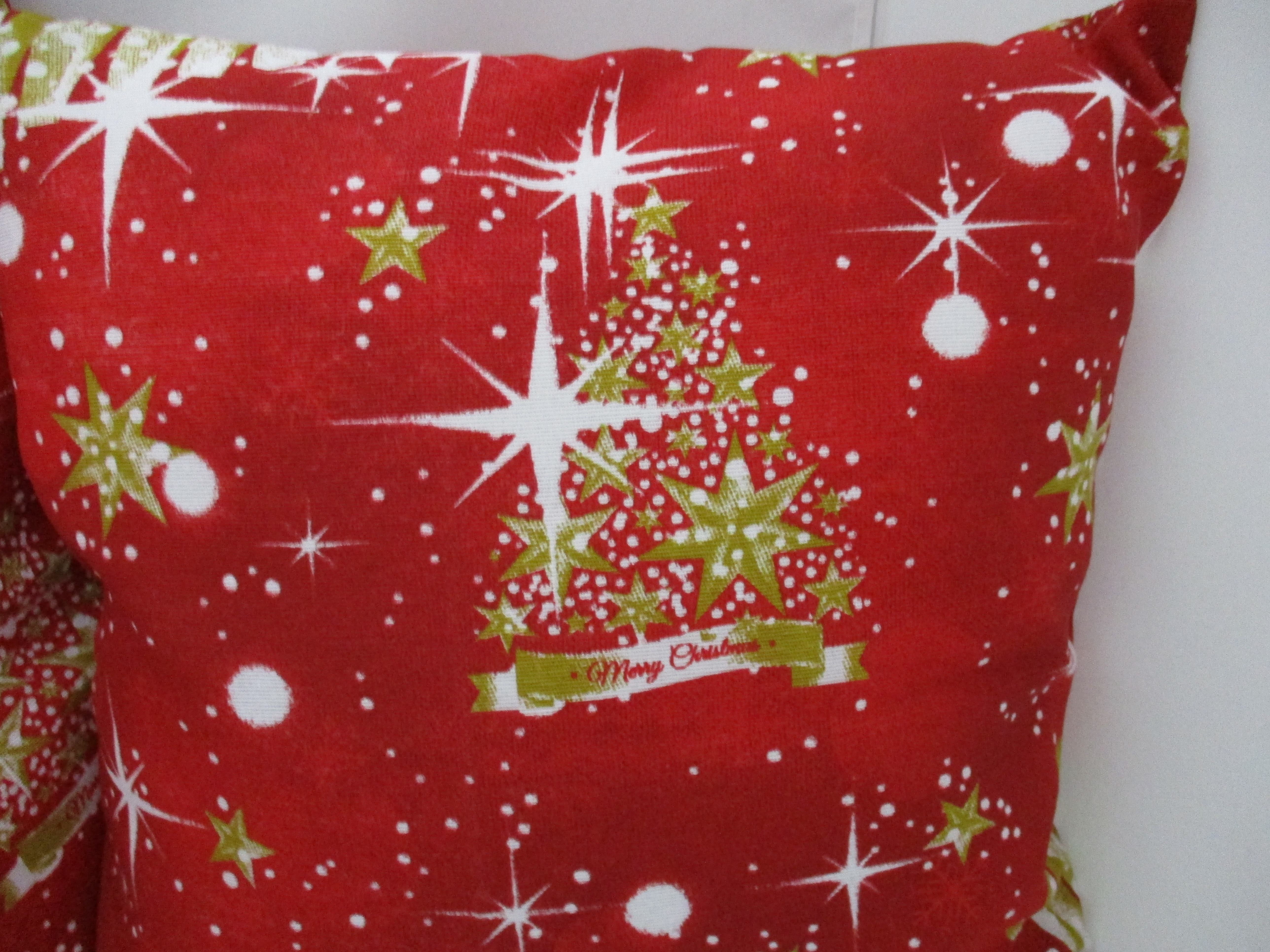 Vianočná obliečka v dvoch veľkostiach, ušitá z kvalitnej pevnej zmesovej bavlnenej látky v červeno-bielo-zlatej kombinácii farieb. Zapínanie je na zips v spodnej časti obliečky. veľkosť 50x50cm - cena 7,-€ + poštovné; veľkosť 40x40cm - cena 6,-€ + poštovné